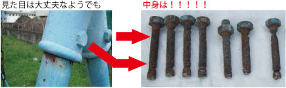 放置によって磨耗、腐食した状態では、いつ事故につながってもおかしくありません。