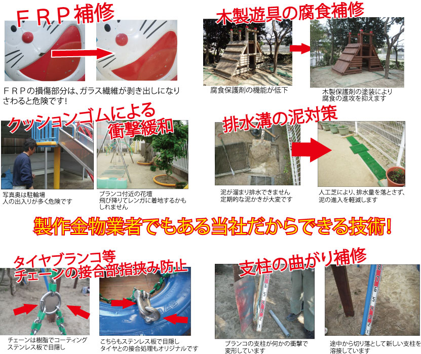 早い段階でメンテナンスをされると、遊具は飛躍的に長持ちします。
