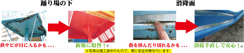 結果、強度がなくなり、遊具そのものの崩壊につながります。