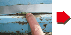 - 滑降部フレームと底板ステンレス板の間に溶接がはずれている隙間が4箇所ありました。