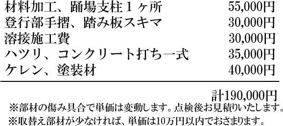 - 踊り場と支柱を新規に製作しました。 仕上げ塗装を施してあります。